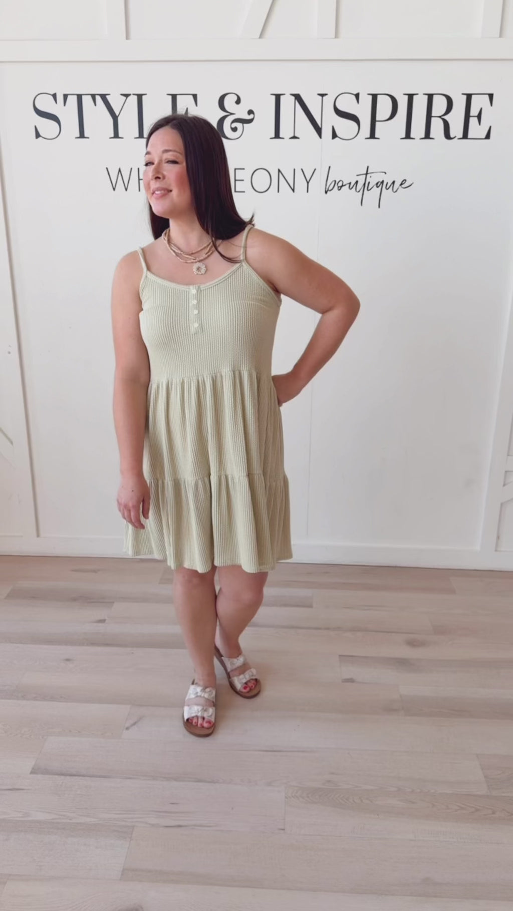 Style: Crafted from super soft and stretchy material, the Gretchen Button Front Tiered Cami Dress features a scoop neck, spaghetti straps, and button front detail. The mini length and tiered layers add a touch of chic to this dress, while the vertical ribbing ensures a figure-flattering fit. Perfect for any occasion.