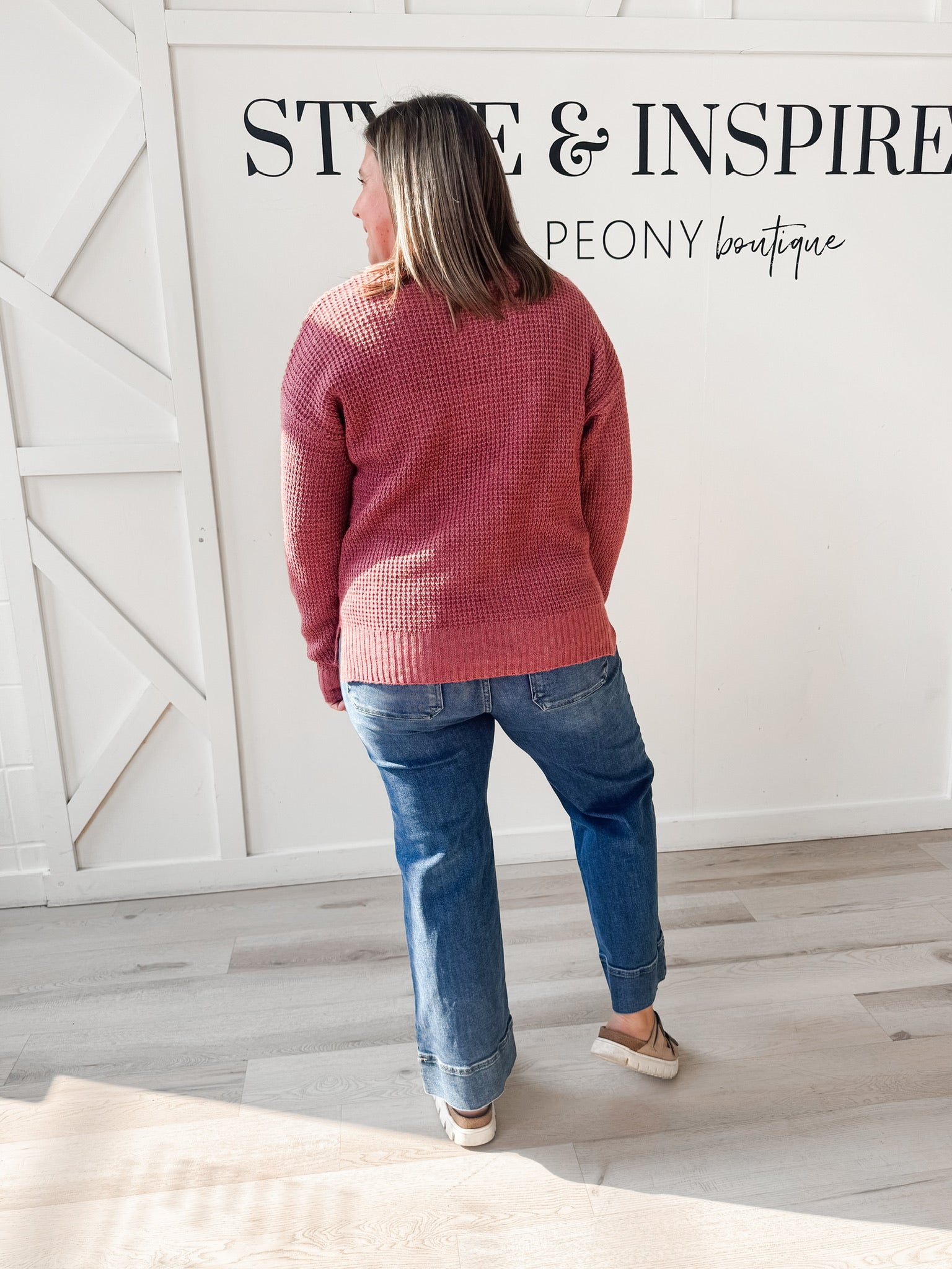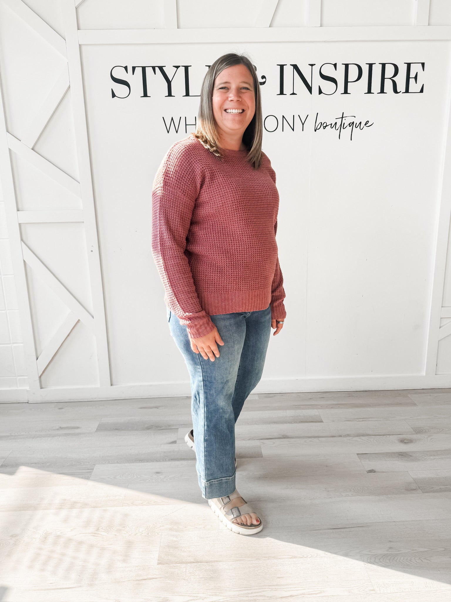 Style: The Mindy Waffle Sweater combines a timeless crew neck and relaxed drop shoulders with long sleeves for a comfortable fit. Its straight hem features side slits and contrast ribbing on the neckline, cuffs, and hem, adding refined detail and subtle visual interest. Made from super soft fabric, this sweater delivers both warmth and sophistication, making it an essential layering piece for versatile styling.